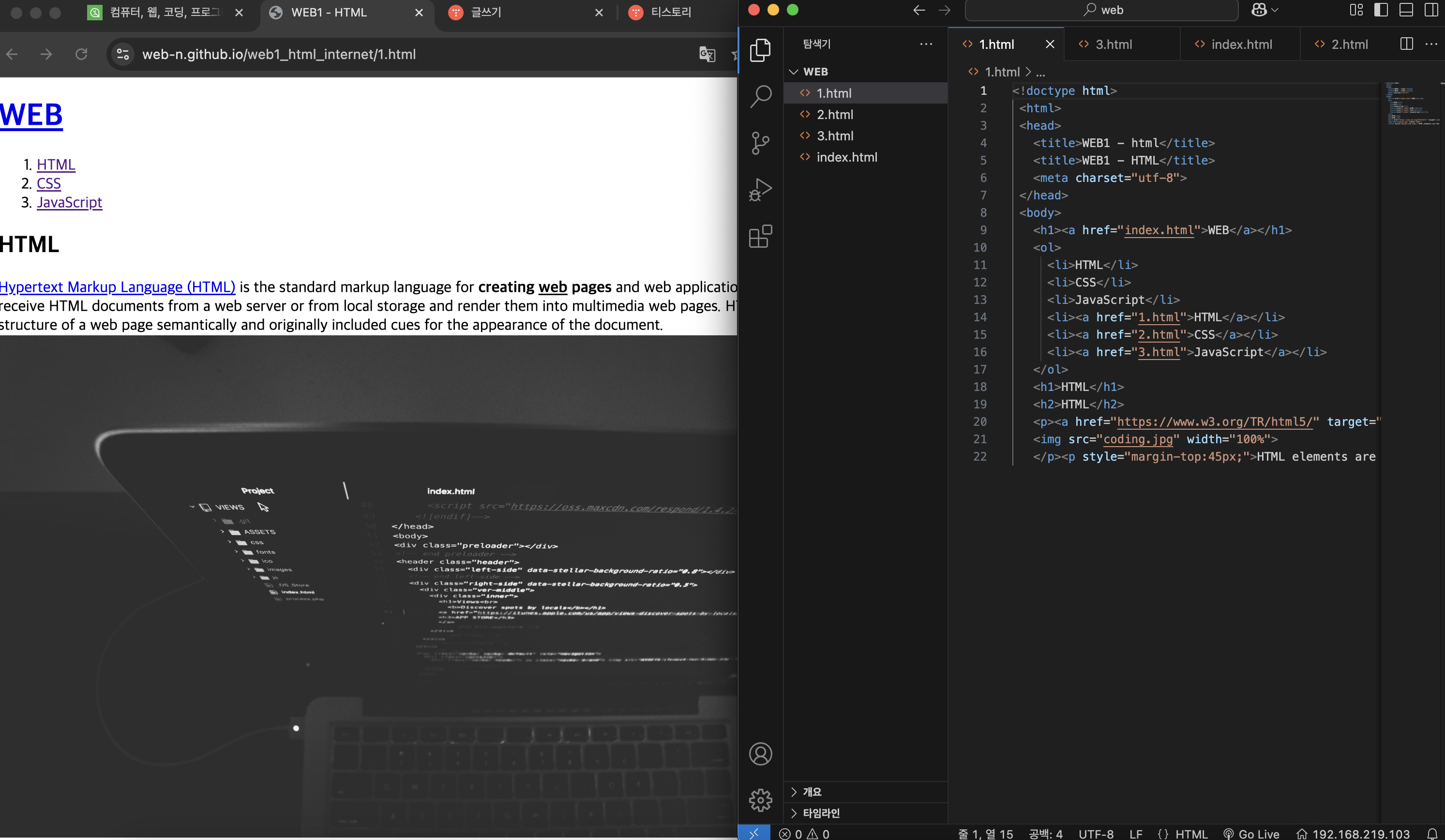 · 웹에서는 결과를 웹 페이지, 웹페이지가 모여있으면 웹 사이트라고 한다.